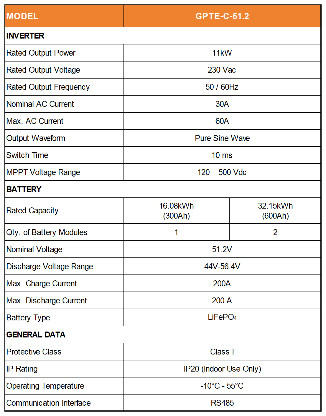 Powerful 11 kW Inverter – Higher output power than standard 6.2 kW systems, supporting more household appliances simultaneously.