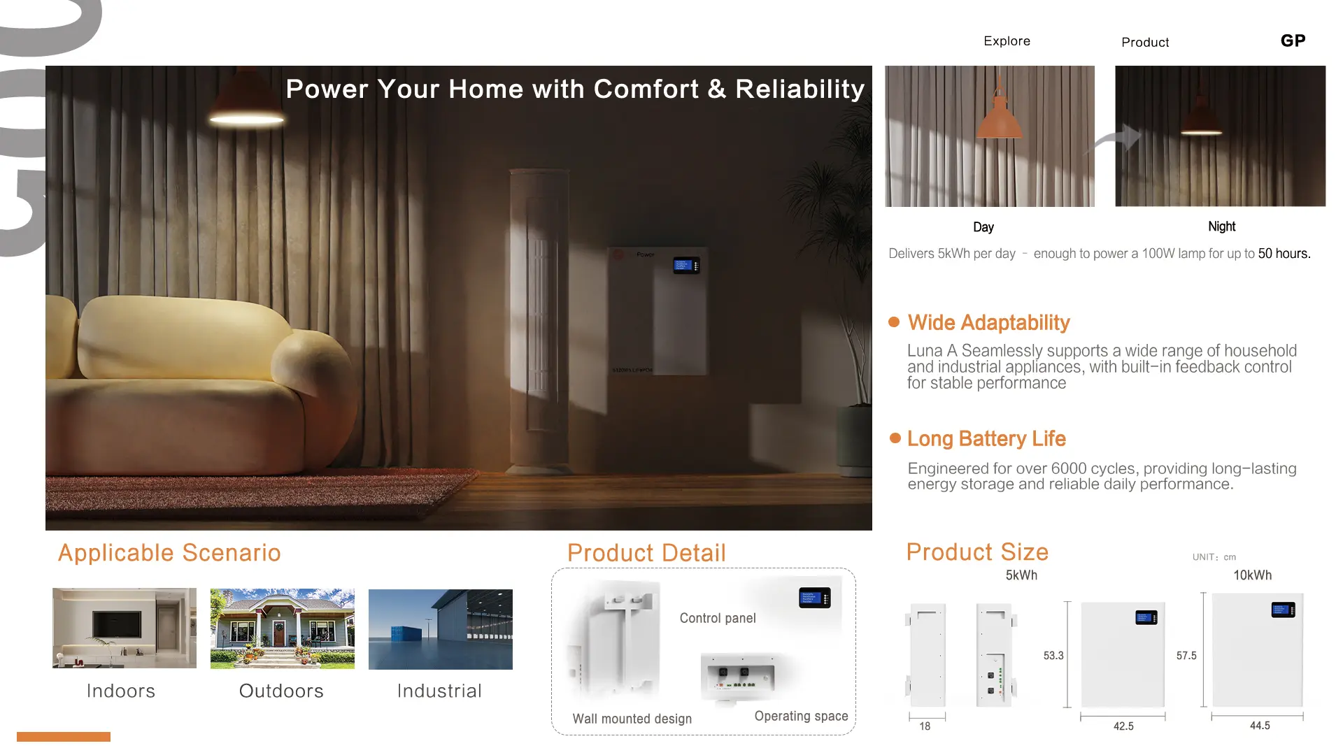 - Solar Energy Storage: Integrate the LUNA A Series with your solar panel system to store excess energy generated during the day. This stored energy can then be used at night or during periods of low solar output, providing a reliable and eco-friendly power source.