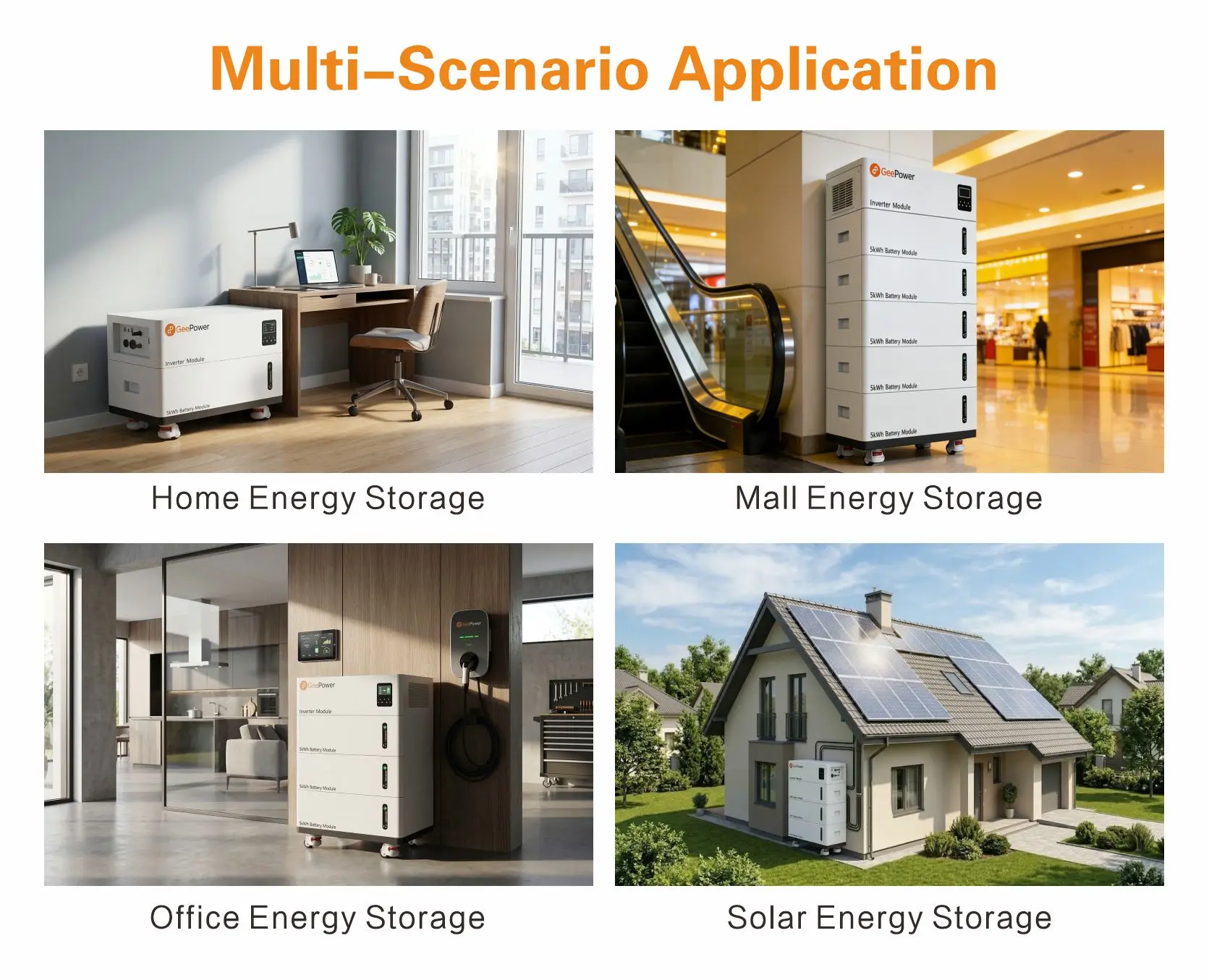 - Backup Power – Supplies essential household loads automatically during grid outages.